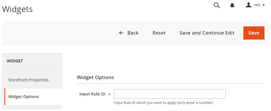 Widget NameandStore Viewto be displayed - In the