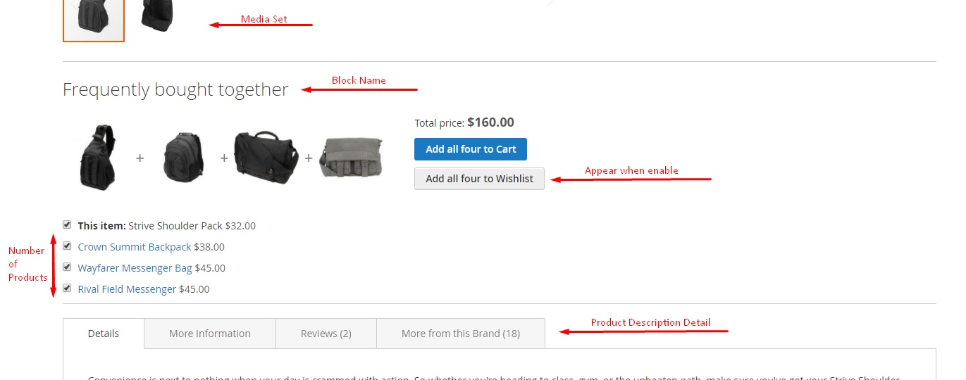 - Name the Frequently Bought Together block displaying in Product page.