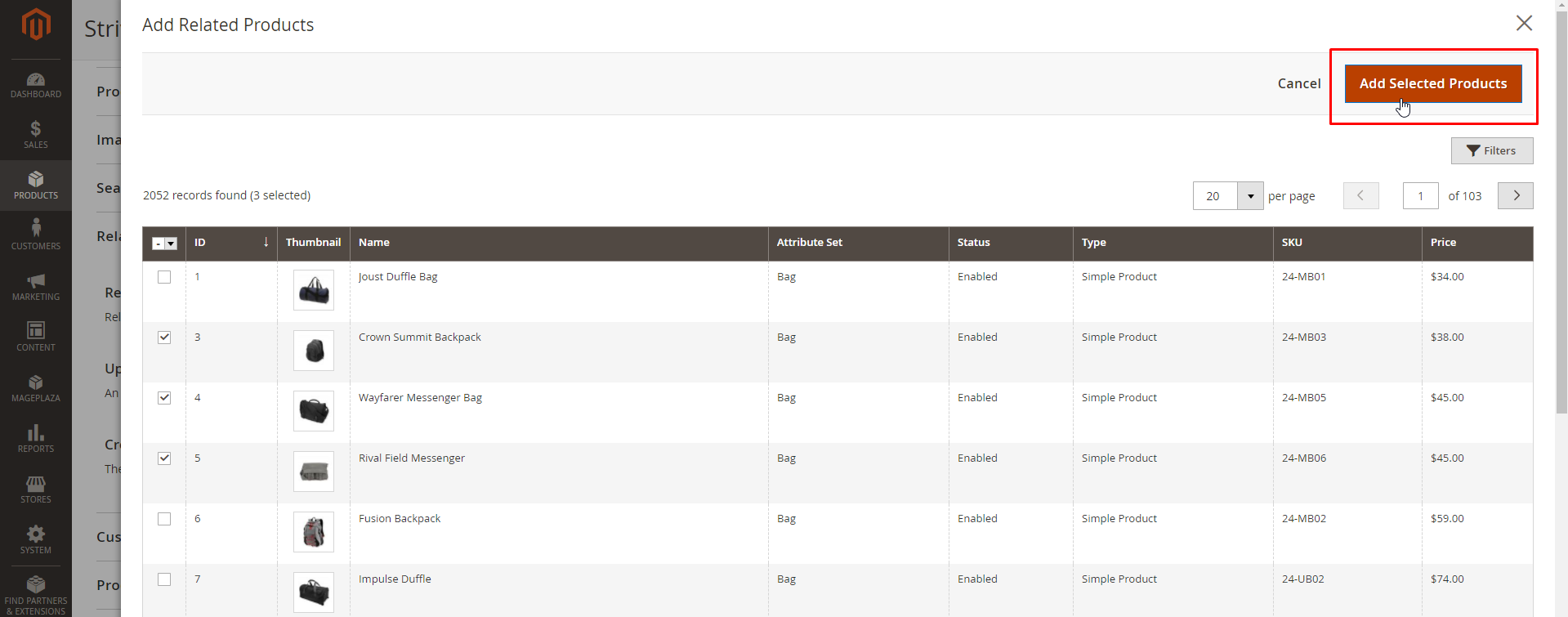 - Select Add Selected Products