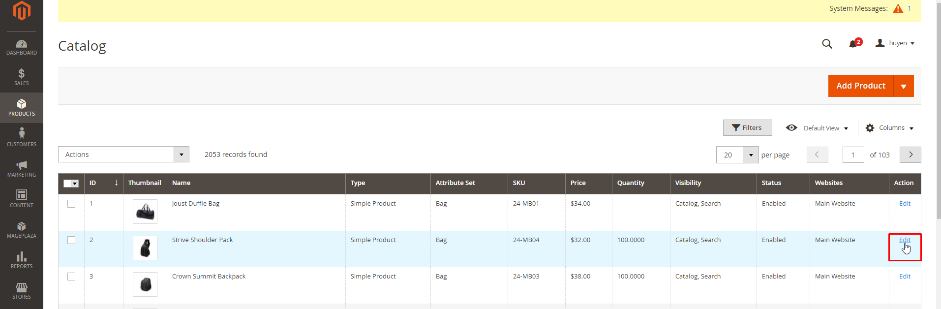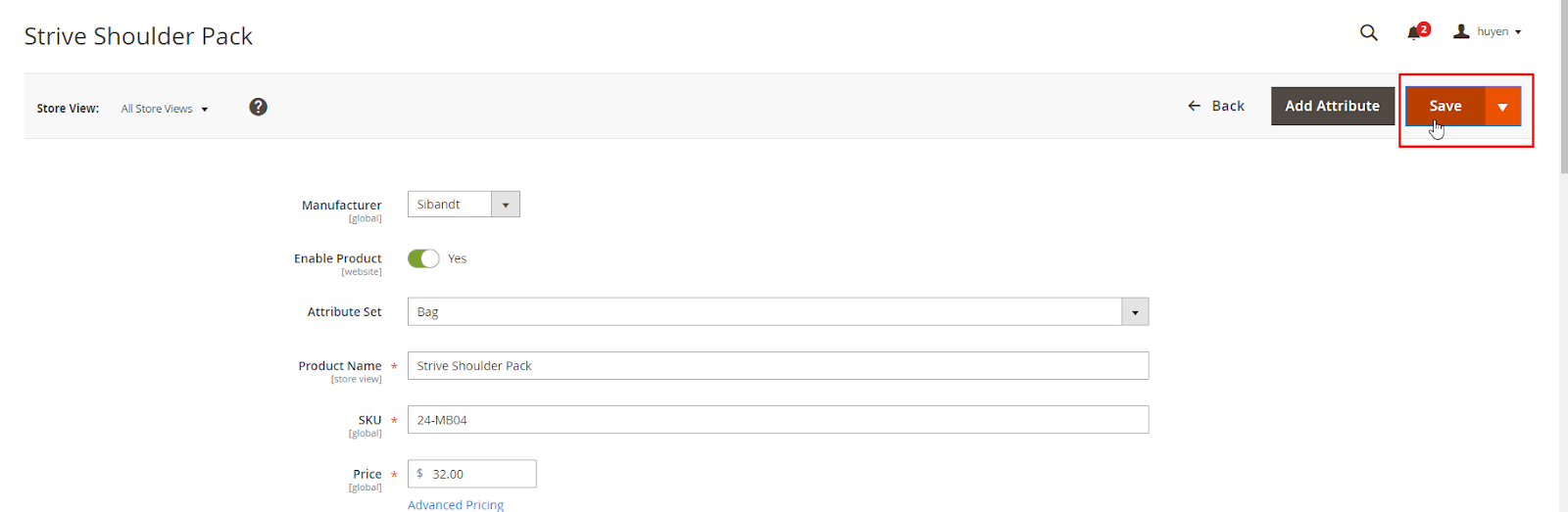 Products > Inventory > Catalog > Edit 1 Product