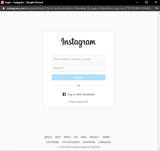- Display Instagram login requirement, enter your credentials, and click on Login