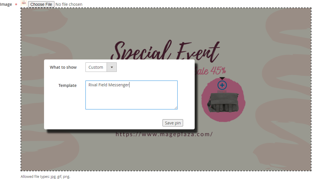 - Template: Enter the information that you want to show with the marker. Click Save pin to save the setting.