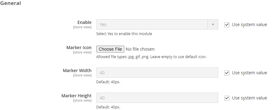 - Marker Icon: Select icon for the marker. Allow file types: jpg, gif, png. If left blank, the icon will be displayed according to the default setting