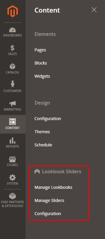 Log in to your Magento backend, go to Content > Lookbook Sliders > Manage Lookbooks