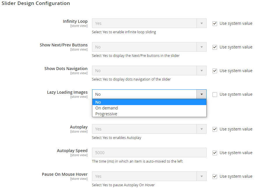 Pause On Mouse Hover: Select Yes so that when you hover on the displayed lookbook, the slider will not move automatically