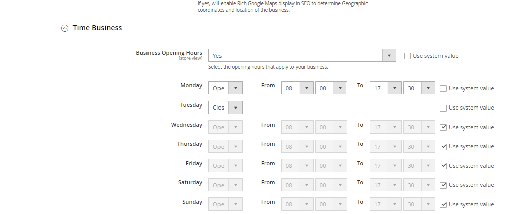 - Business Opening Hours: If Yes, you can select the opening hours that apply to your business.