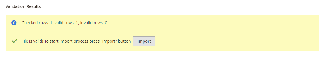 - If the file is valid, click “Import” is displayed in the Validation Results section.