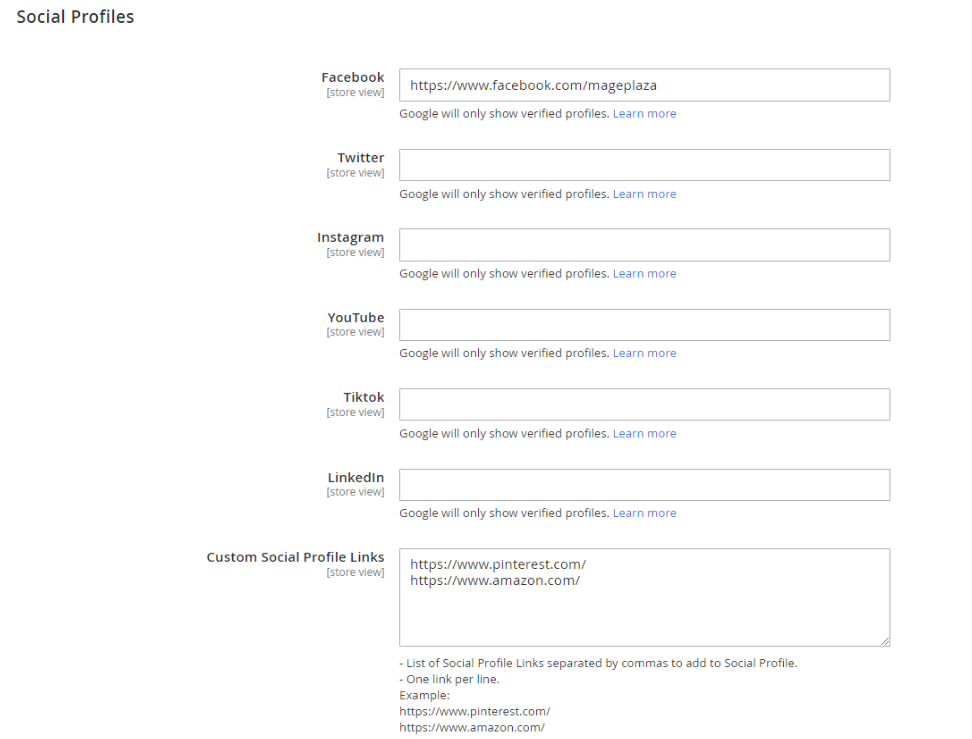 - When the searcher clicks on one of your social links, they will be redirected to that social page of your store.