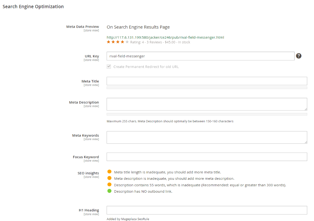 This add-on tool will assist SEO extension in assessing and marking which and how to perform the structured data at the best for SEO progress. You can have a general review for the SEO analysis at the Product Page, Category Page and CMS Page.
